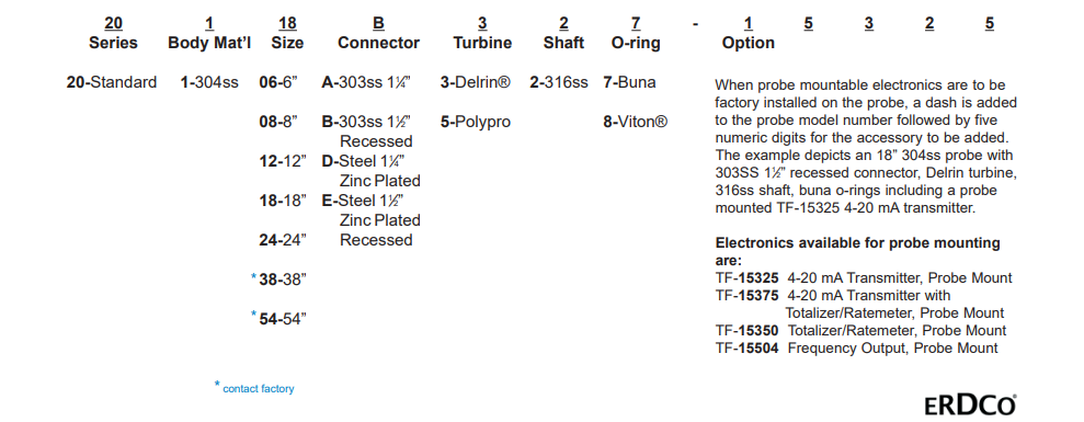 ERDCO Engineering Turbo-Flo 20系列探頭規格: