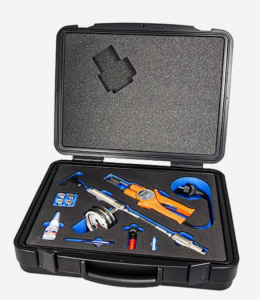 裝在工業手提箱中,配有 5 個扁平滑輪、Turbo Fuse 粘合劑、小車切割器、加熱小車拆卸器、小車清潔工具、小車插頭。可追溯到 UKAS 的校準證書是可選的附加功能。