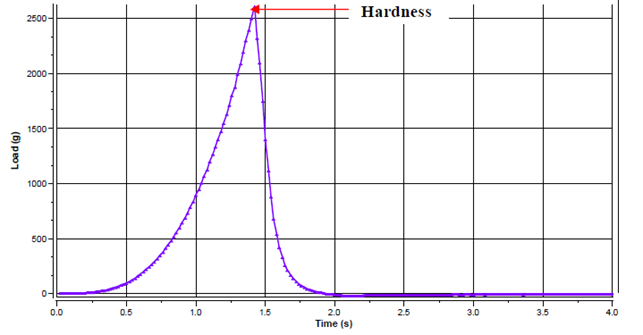 - 最大峰值力是測量樣品硬度的一種方法。硬度值與所選擇的壓縮程度相關:變形量越大,硬度值越高。