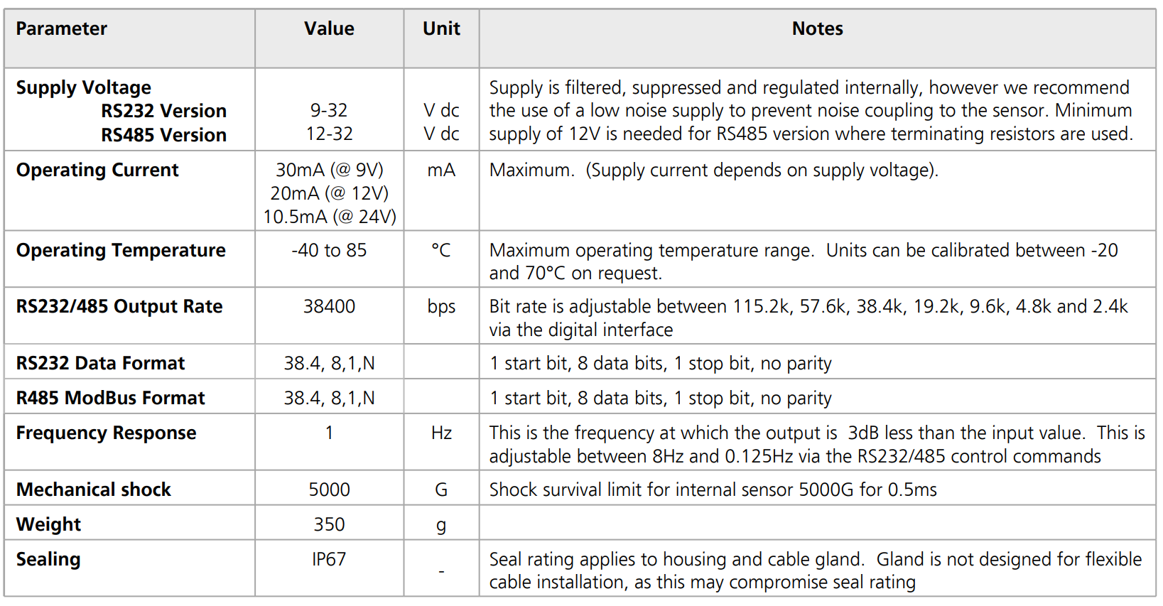 · 提供RS232與RS485輸出版本