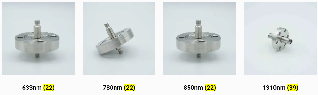帶有 FC/APC、FC/PC 和 SMA 接口的單模光纖穿通件。光纖波長包括 633nm、780nm、850nm、1310nm